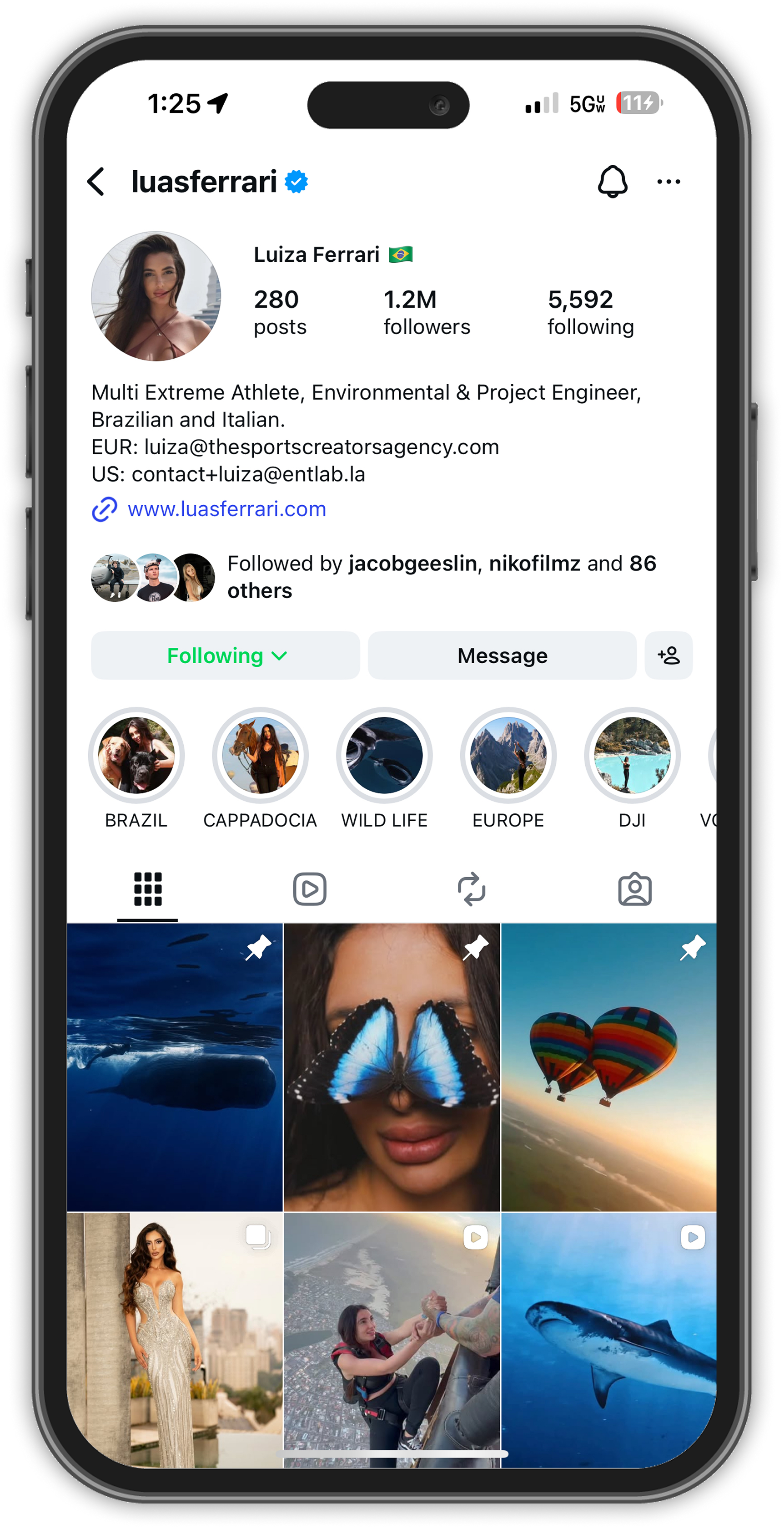 By blending breathtaking visuals with genuine personal story, Luiza has built a community that doesn't just watch, it follows, shares, and converts. Her profile is a proven platform for brands looking to reach an adventure-driven, globally minded audience.